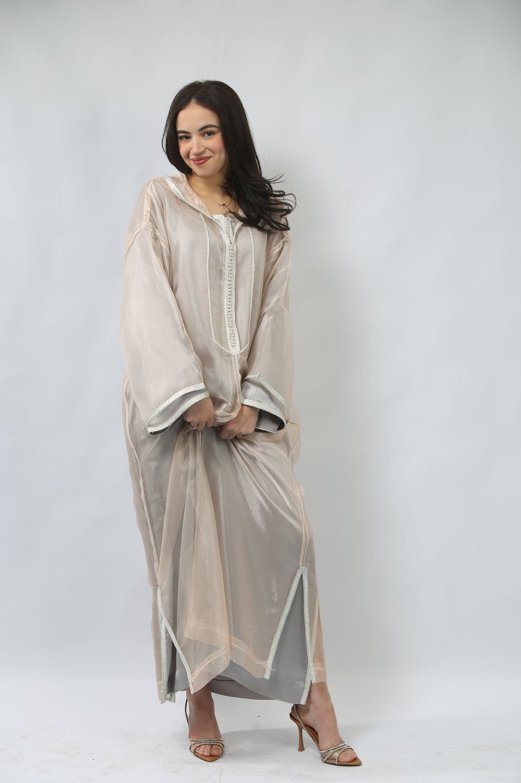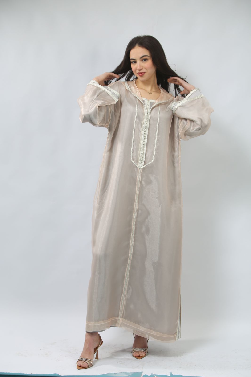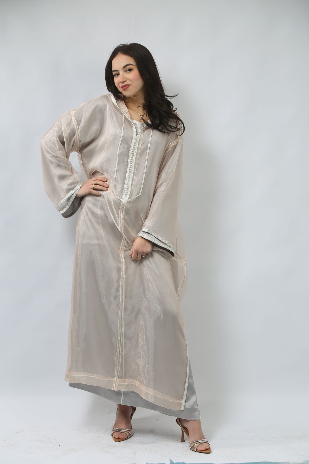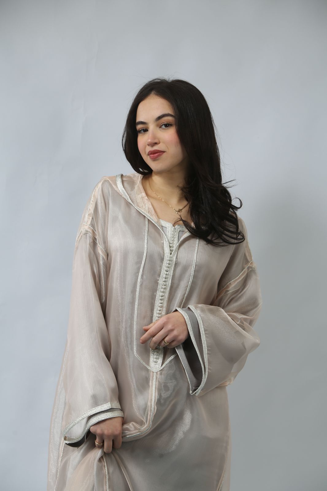L'Essence de l'Éclat : Jellaba Saumon et Détails Métalliques